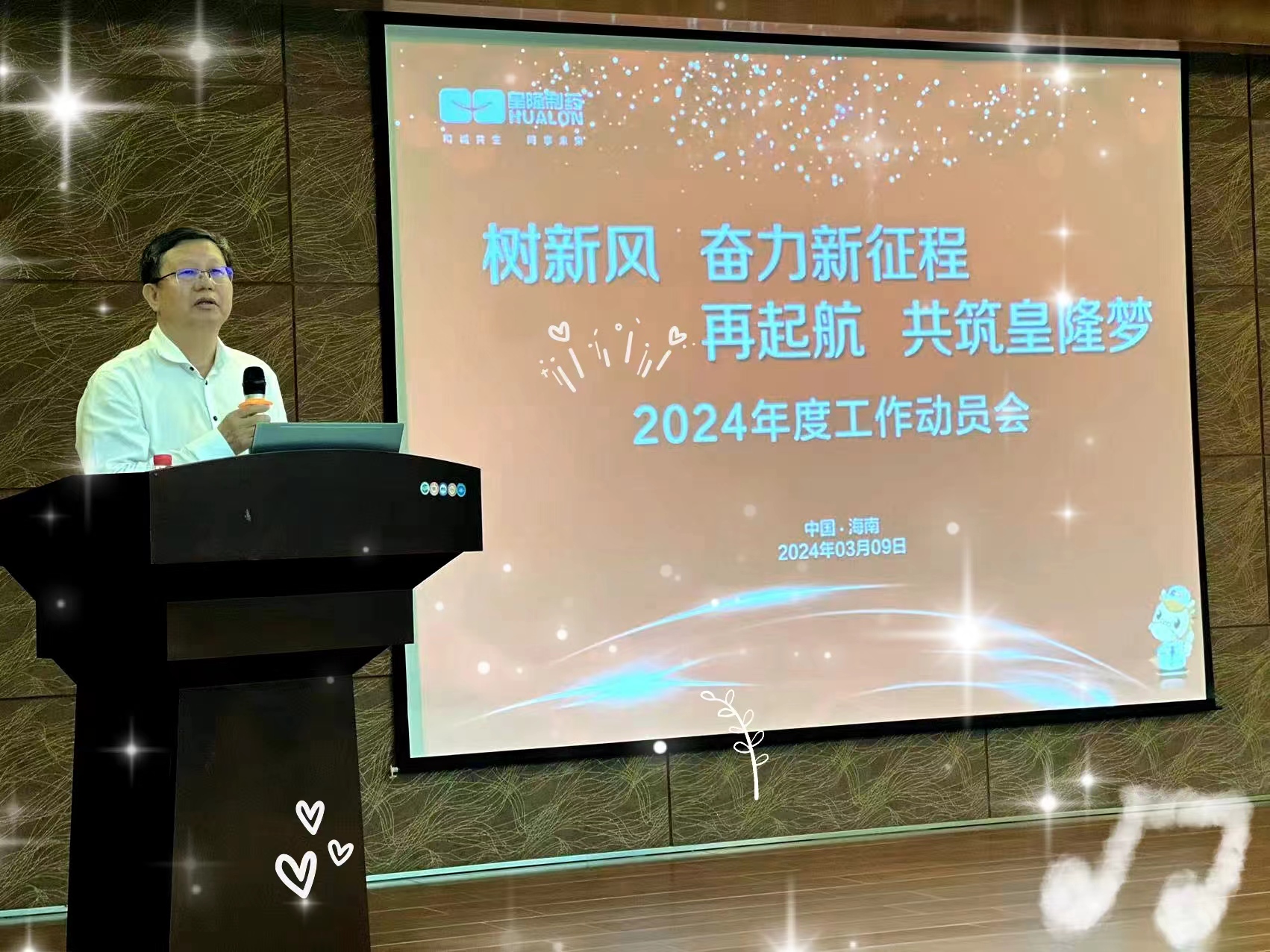 公司董事長、總經(jīng)理陳益智做總結(jié)。他首先感謝過去一年全體員工所做的努力,對(duì)部門管理人員的述職表現(xiàn)和高管的培訓(xùn)給予了充分肯定。然后陳總開始就2024年進(jìn)行工作總動(dòng)員。根據(jù)會(huì)議主題“樹新風(fēng),奮力新征程;再起航,共筑皇隆夢”!董事長進(jìn)行重點(diǎn)深入的詮釋,就此引入皇隆的企業(yè)文化、闡述皇隆文化的內(nèi)涵,要求大家大力弘揚(yáng)皇隆優(yōu)秀文化,擦亮皇隆制藥品牌名片,增強(qiáng)皇隆文化自信!同時(shí)對(duì)2024年如何樹立榜樣、弘揚(yáng)精神,激發(fā)團(tuán)隊(duì)活力做出了動(dòng)員。